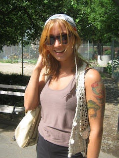 Meet Rosanna, a beautiful young Swedish lass, here to brighten our shores. Here, it's Washington Square Park she chooses to grace with her grace...